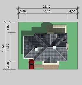 - Min. wymiary działki 23.10x18.50 m