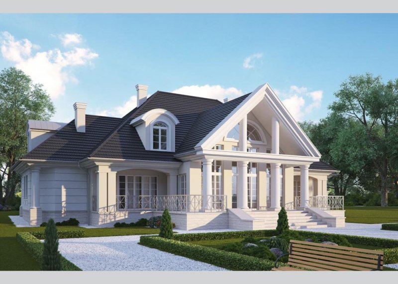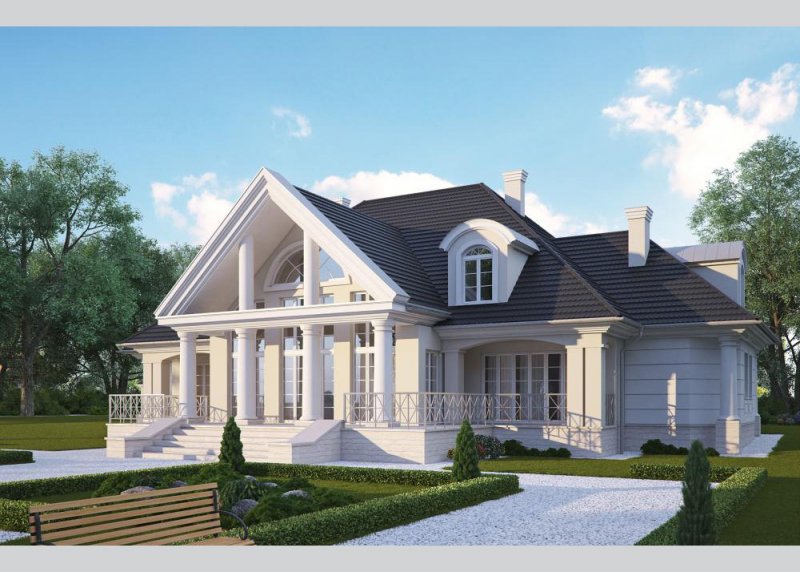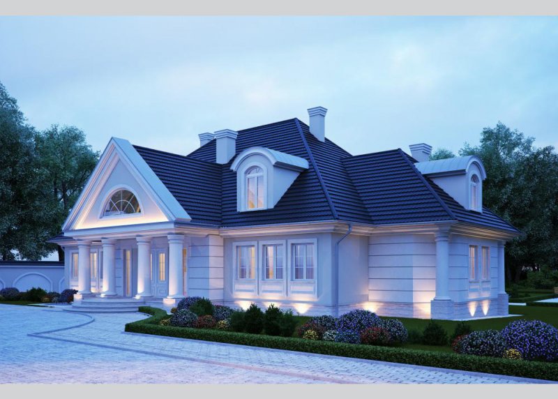 - Elewacje: wykończone tynkiem silikonowym, częściowo obłożone kamieniem naturalnym ciętym