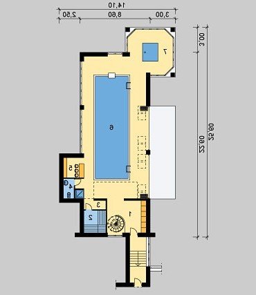 Parterowy budynek basenowy.