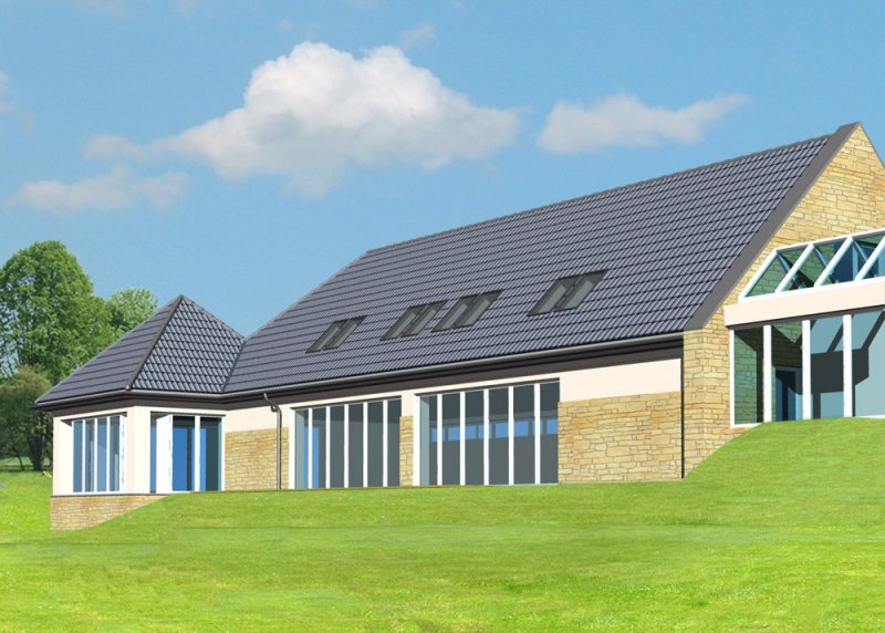 - Pokrycie dachu: dachówką ceramiczną 'Koramic' firmy 'Wienerberger'
