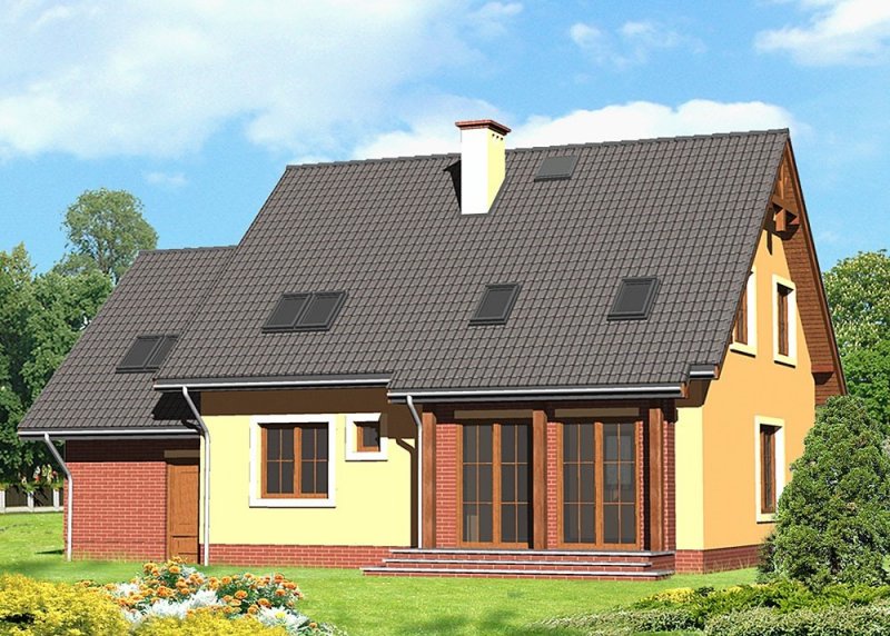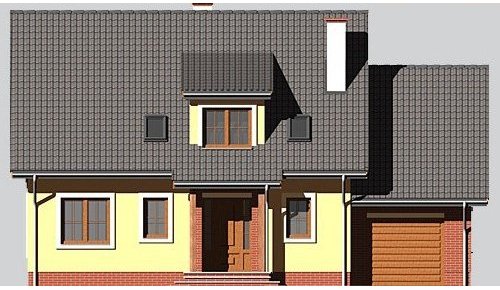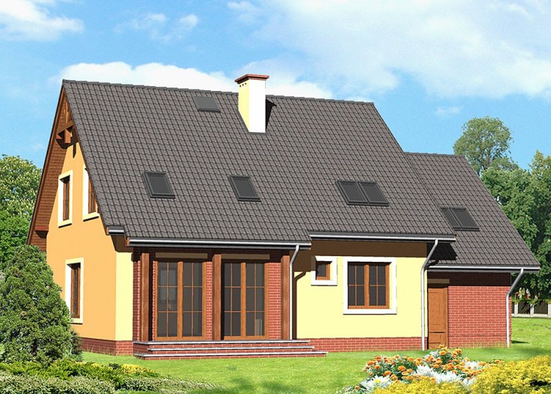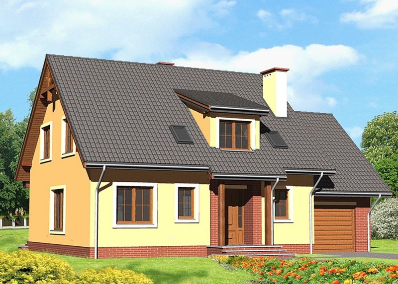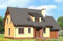 Dom jednorodzinny, parterowy z poddaszem użytkowym i jednostanowiskowym garażem.