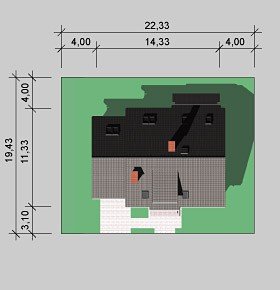 - Min. wymiary działki 22.33x19.43 m