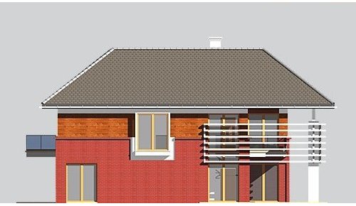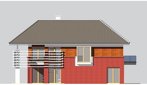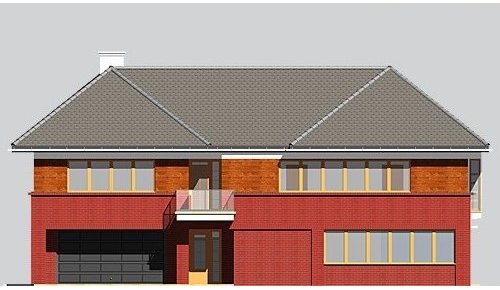 - Elewacje: do wysokości parapetu na poddaszu wykończone cegłą klinkierową, na wysokości poddasza wykończone tynkiem silikonowym,