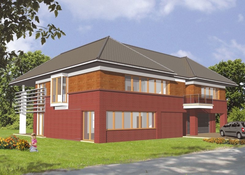 Dom jednorodzinny, piętrowy, podpiwniczony, z dwustanowiskowym garażem.