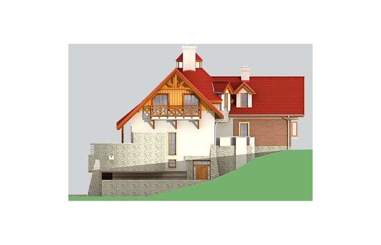 Dom jednorodzinny,parterowy, z poddaszem użytkowym, podpiwniczony, z dwustanowiskowym garażem.