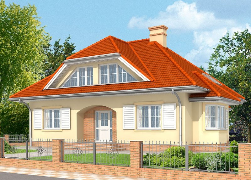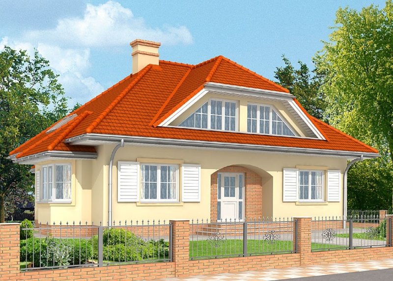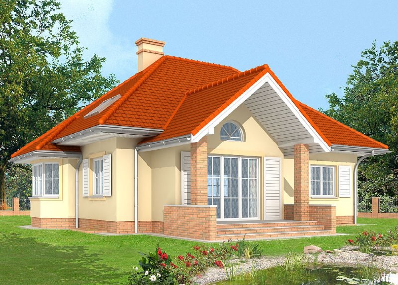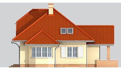- Elewacje: wykończone tynkiem silikonowym, cokół obłożony płytkami klinkierowymi