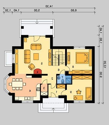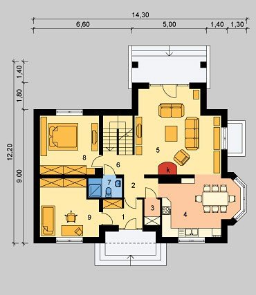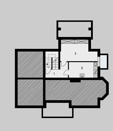 Dom jednorodzinny, parterowy, z poddaszem użytkowym, częściowo podpiwniczony.