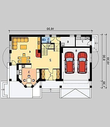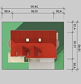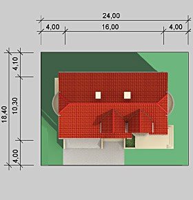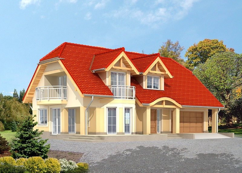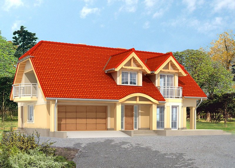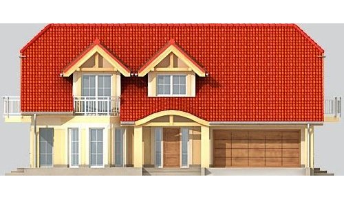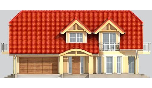 Dom jednorodzinny, parterowy, z poddaszem użytkowym oraz dwustanowiskowym garażem.