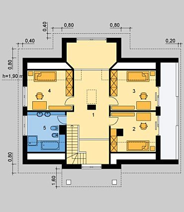 Dom jednorodzinny, parterowy, niepodpiwniczony, z poddaszem użytkowym.