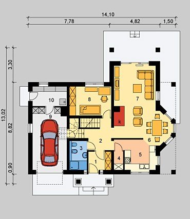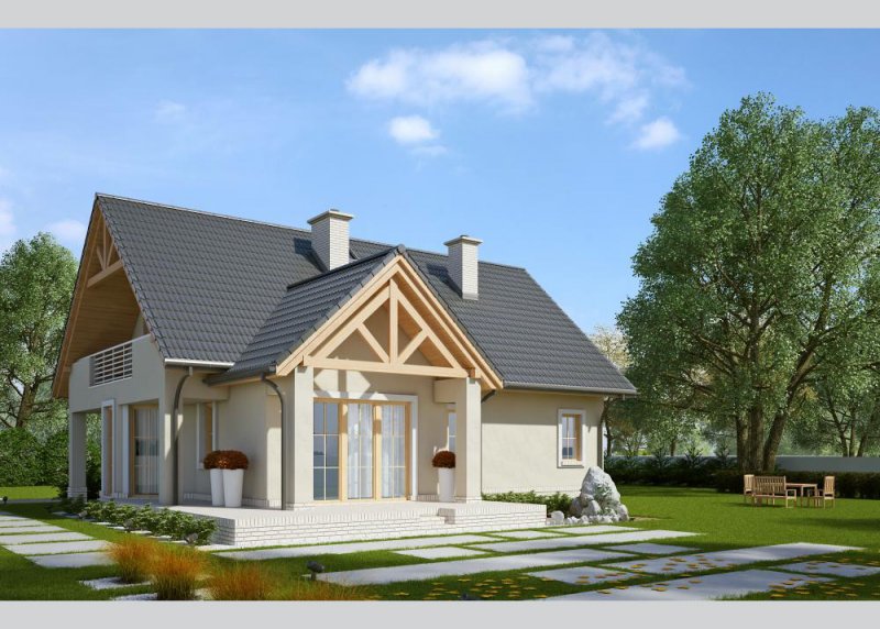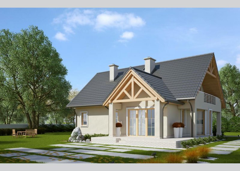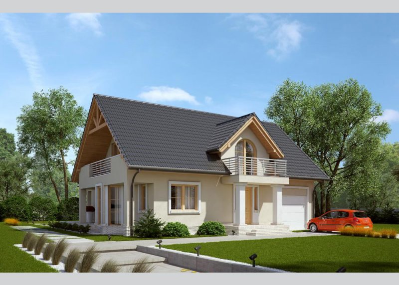 Dom jednorodzinny, niepodpiwniczony, z poddaszem użytkowym i jednostanowiskowym garażem. LK&603 to tradycyjny projekt domu parterowego z poddaszem użytkowym. Doskonałe rozwiązanie dla 4- lub 5-osobowej rodziny.Dom wyróżnia się prostą elegancją oraz wysokim poziomem funkcjonalności.
