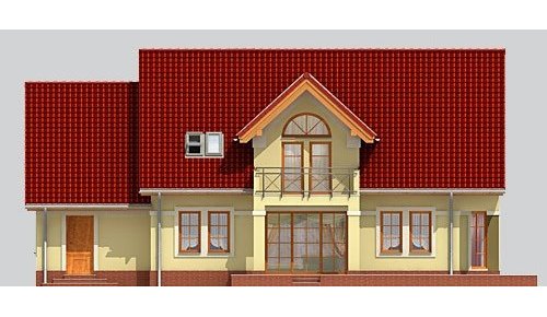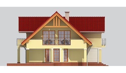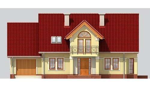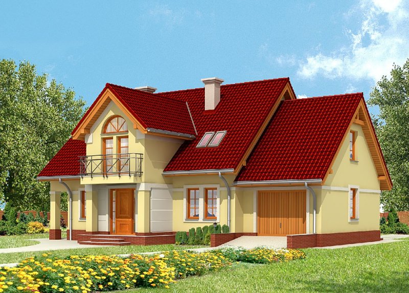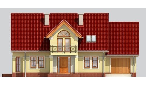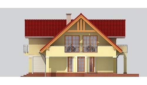 Dom jednorodzinny, parterowy z poddaszem użytkowym i jednostanowiskowym garażem.