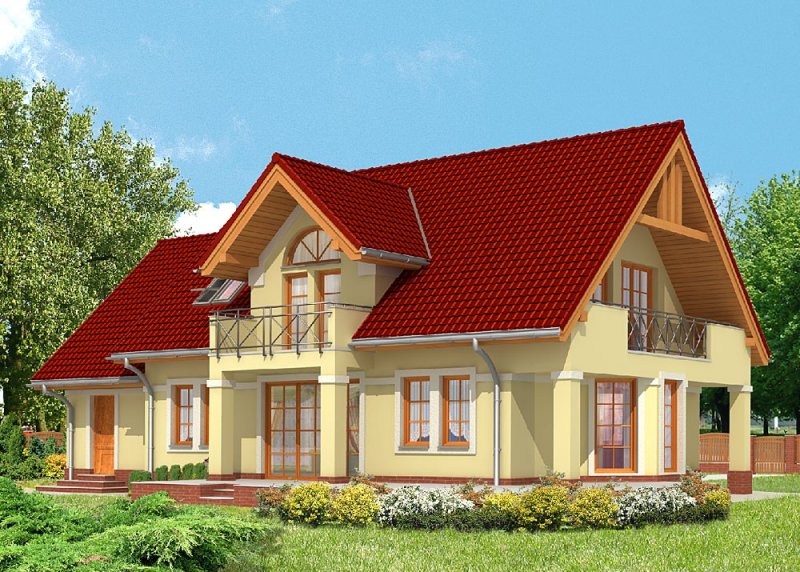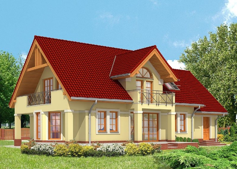 - Pokrycie dachu: dachówką ceramiczną 'Koramic' firmy 'Wienerberger'
