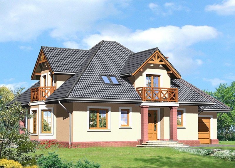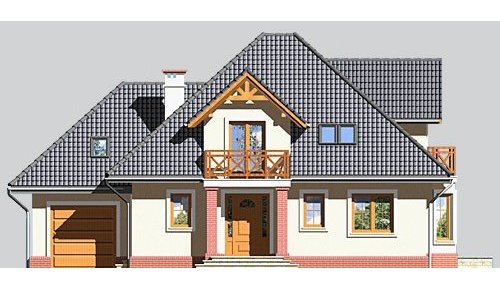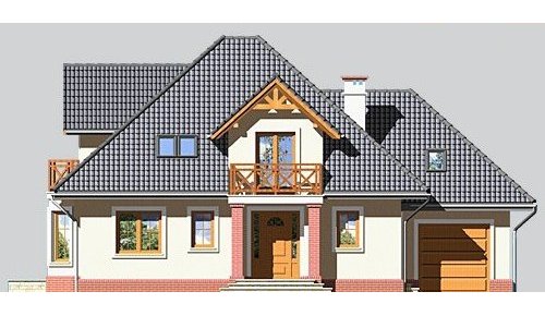 Dom jednorodzinny, parterowy z poddaszem użytkowym i jednostanowiskowym garażem.