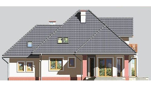 - Elewacje: wykończone tynkiem silikonowym, cokół obłożony płytkami kamiennymi