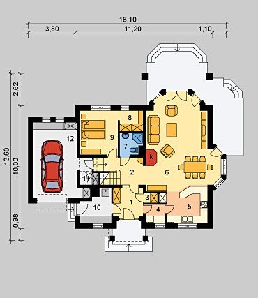 6. Pokój dzienny z jadalnią 38.87m