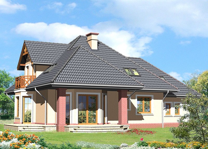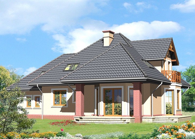 - Pokrycie dachu: dachówką ceramiczną 'Koramic' firmy 'Wienerberger'
