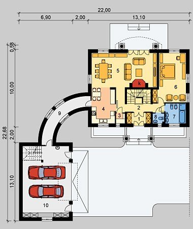 Dom jednorodzinny, parterowy, podpiwniczony z poddaszem użytkowym i garażem dwustanowiskowym.