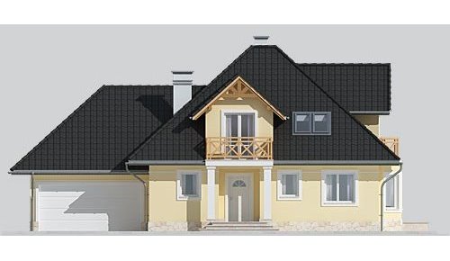 - Elewacje: wykończone tynkiem silikonowym, częściowo obłożone kamieniem naturalnym