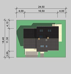 - Min. wymiary działki 24.50x18.40 m