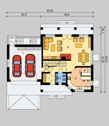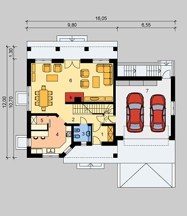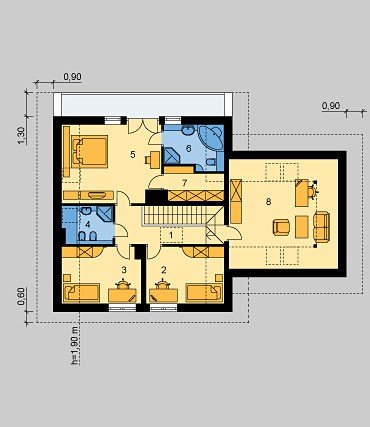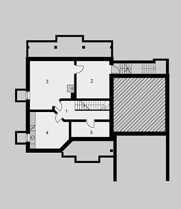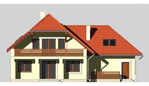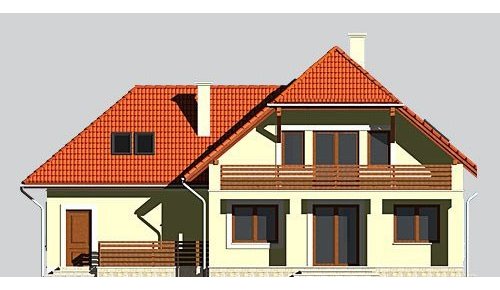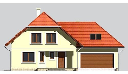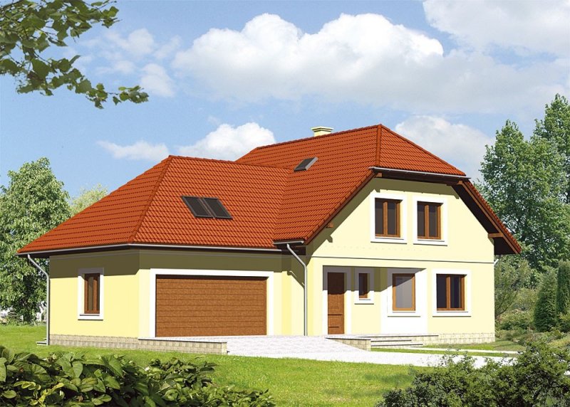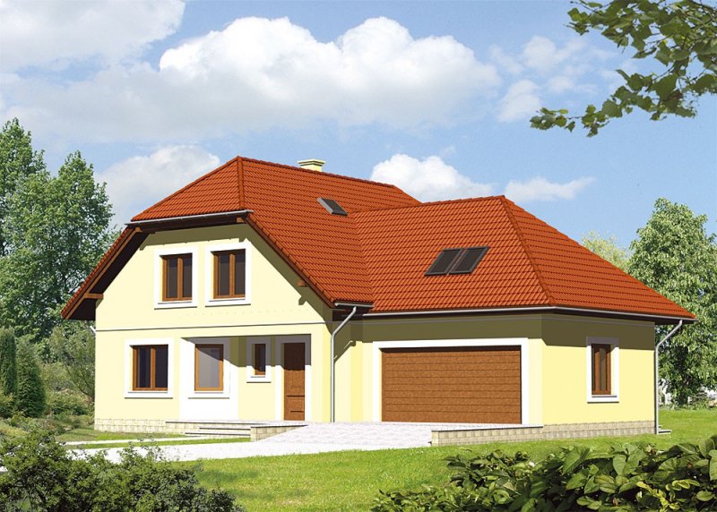 Dom jednorodzinny, parterowy z poddaszem użytkowym oraz dwustanowiskowym garażem, częściowo podpiwniczony.