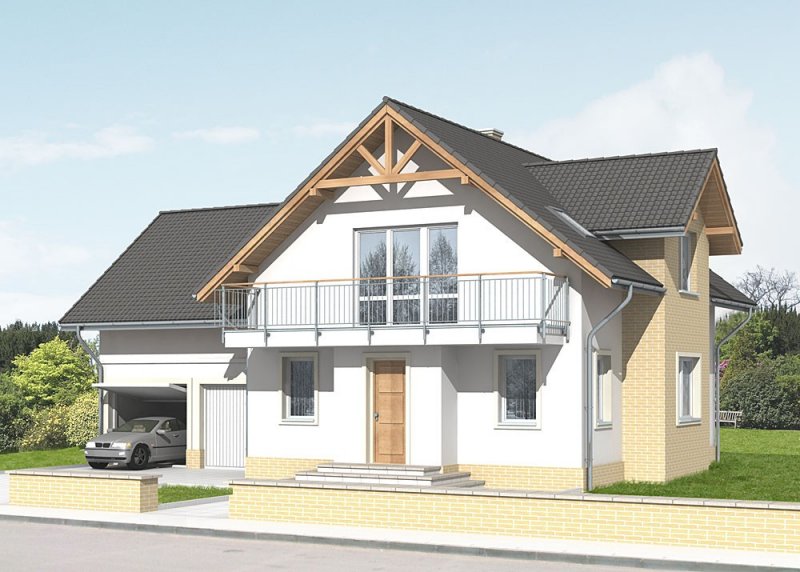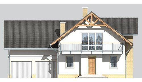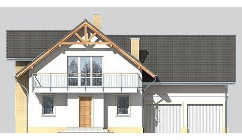 Dom jednorodzinny, parterowy, z poddaszem użytkowym i dwustanowiskowym garażem.