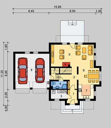 - Min. wymiary działki 22.95x19.85 m