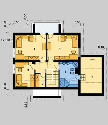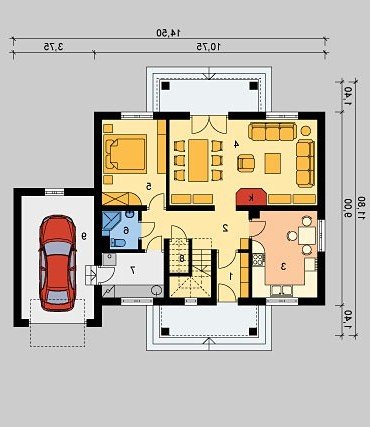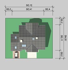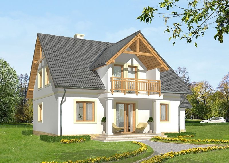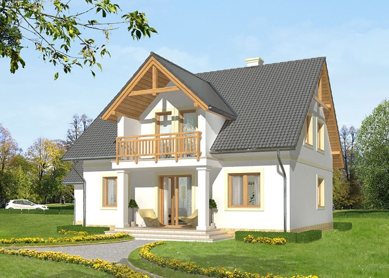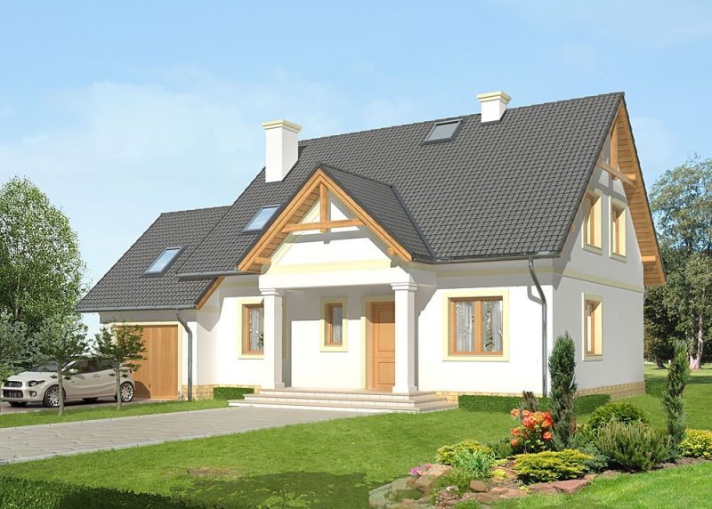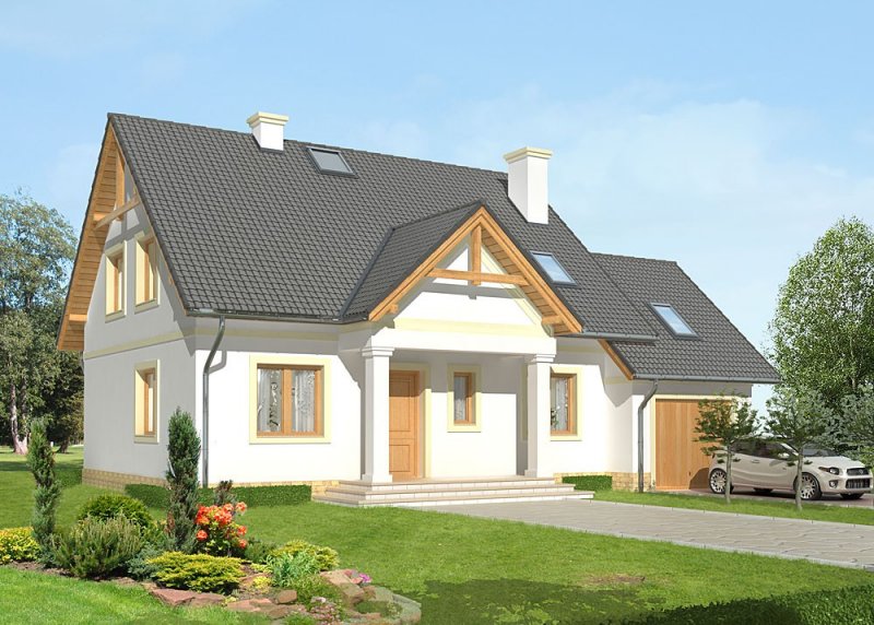 Dom jednorodzinny parterowy, z poddaszem użytkowym i jednostanowiskowym garażem.