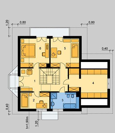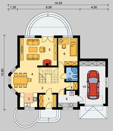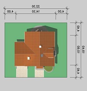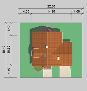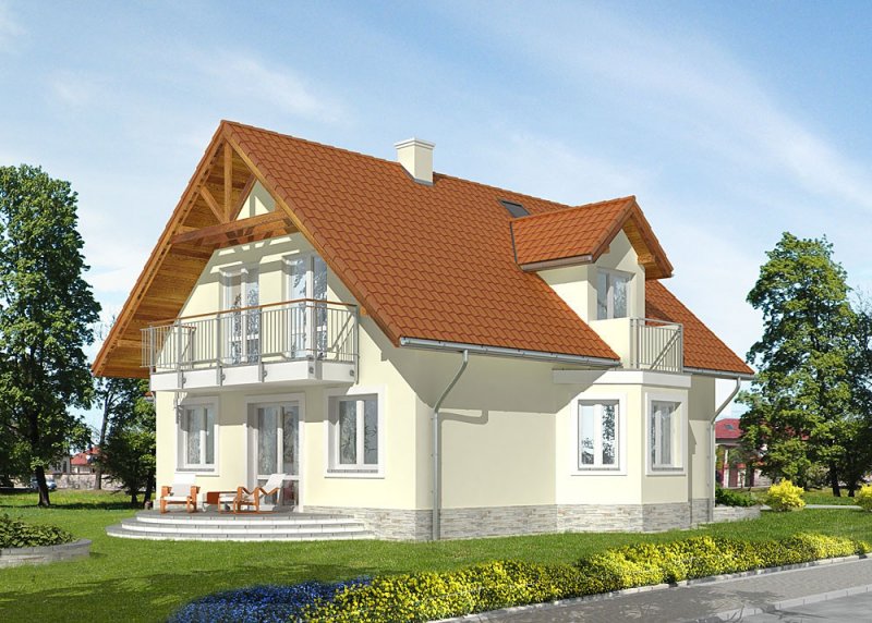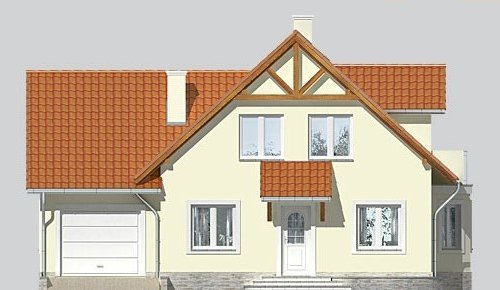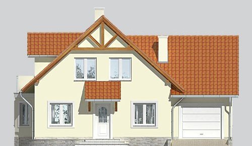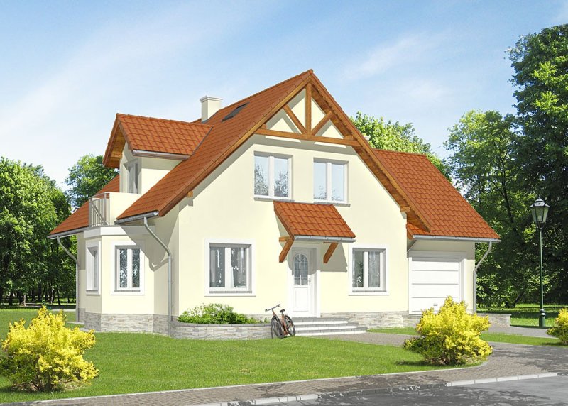 Dom jednorodzinny, parterowy, z poddaszem użytkowym i jednostanowiskowym garażem.