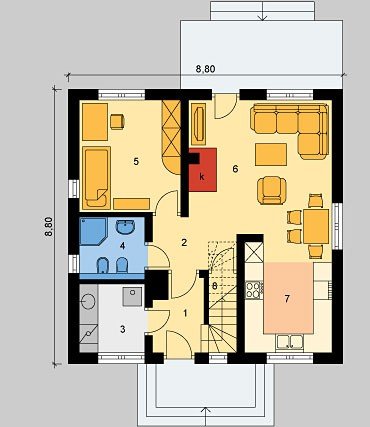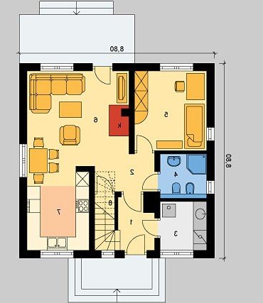 6. Pokój dzienny z jadalnią 19.55m