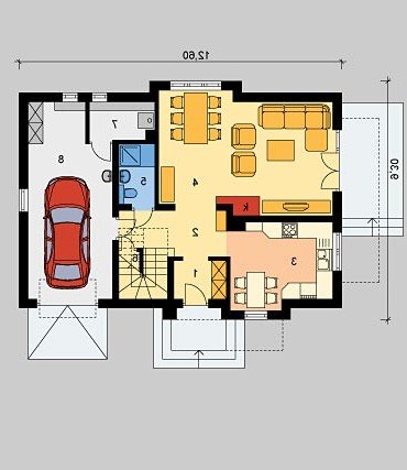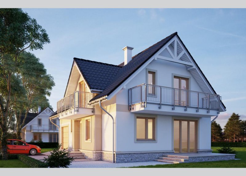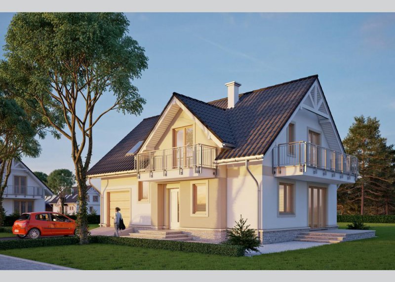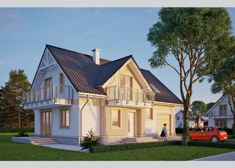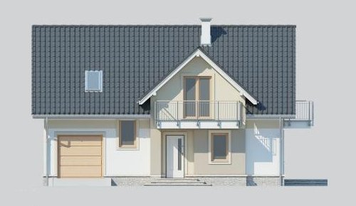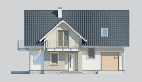 Dom jednorodzinny, parterowy z poddaszem użytkowym oraz jednostanowiskowym garażem.