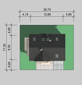 - Min. wymiary działki 17.30x20.75 m