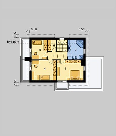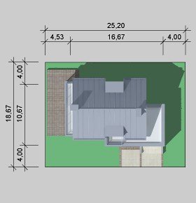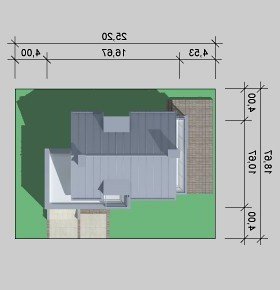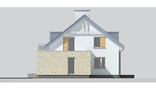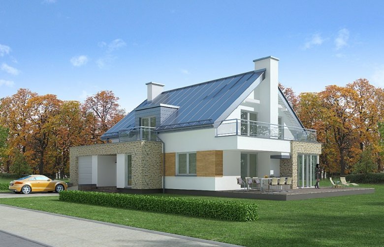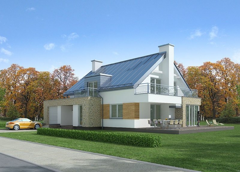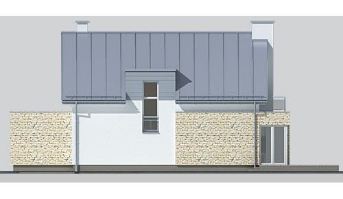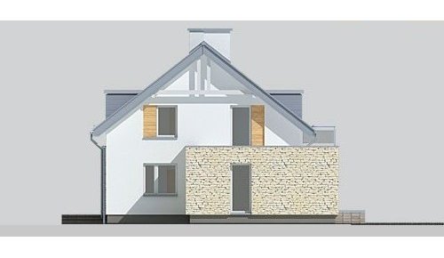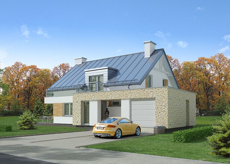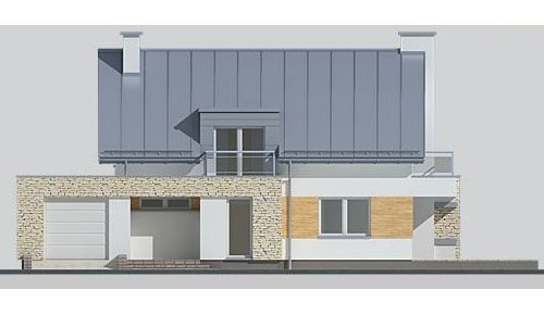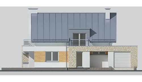 Dom jednorodzinny, parterowy, z poddaszem użytkowym oraz jednostanowiskowym garażem.