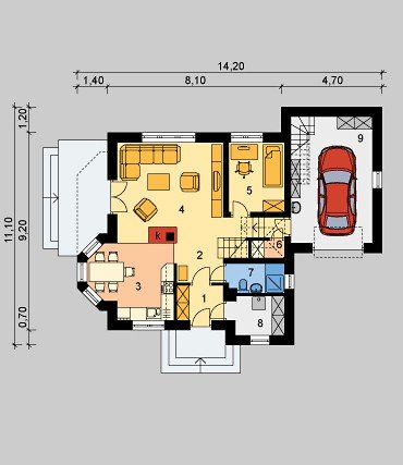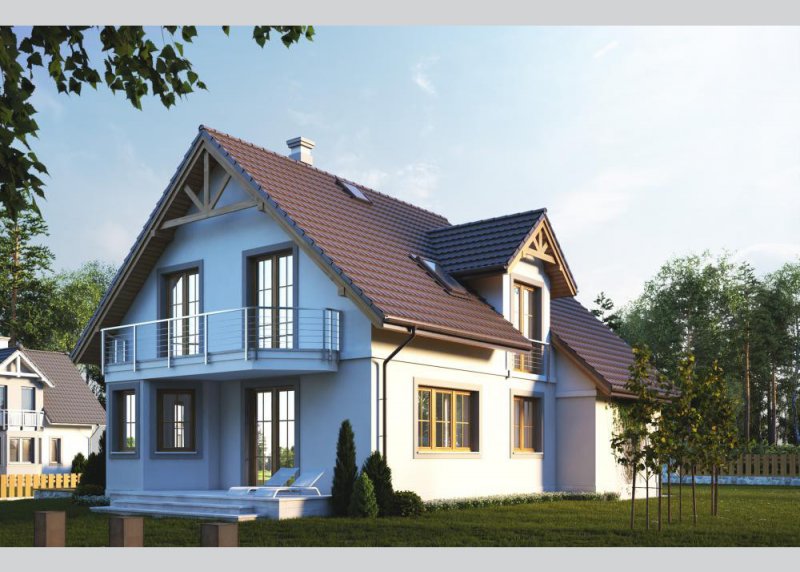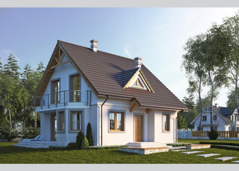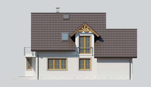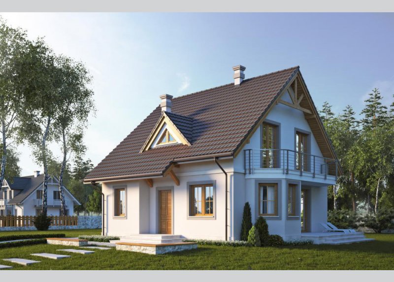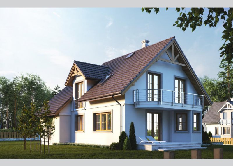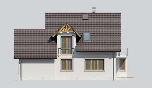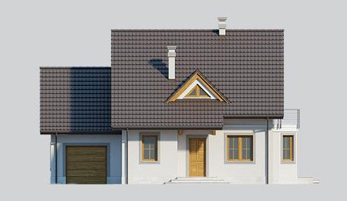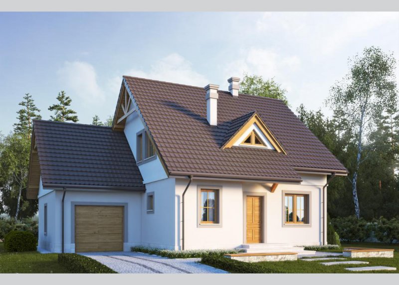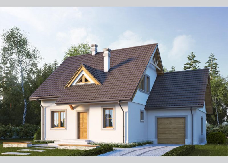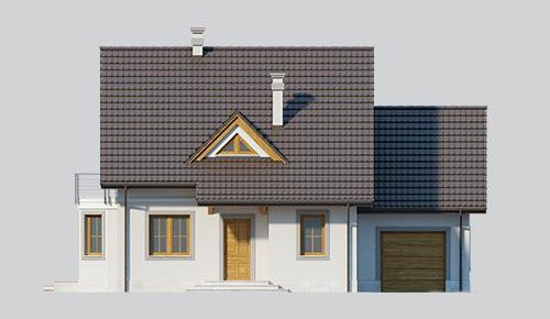 Dom jednorodzinny, parterowy z poddaszem użytkowym i jednostanowiskowym garażem.