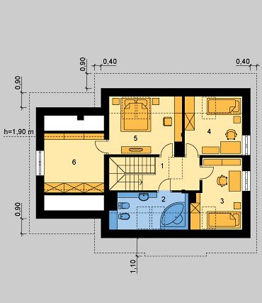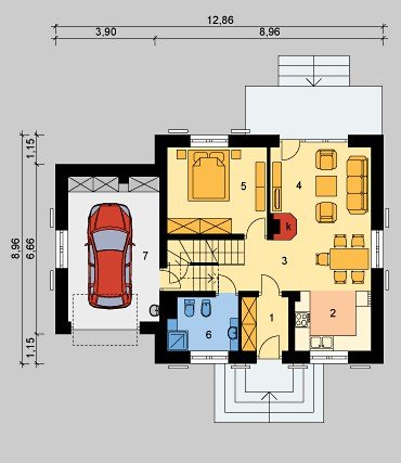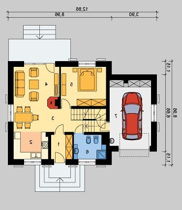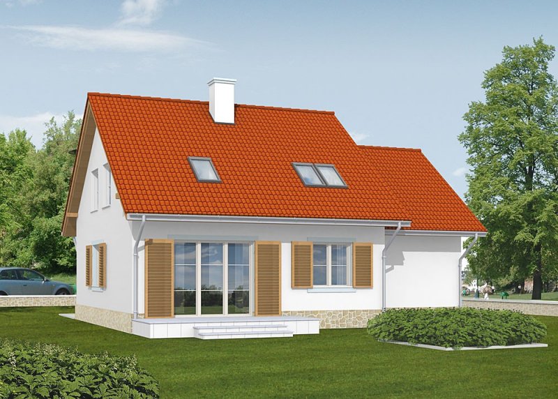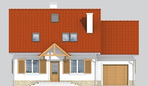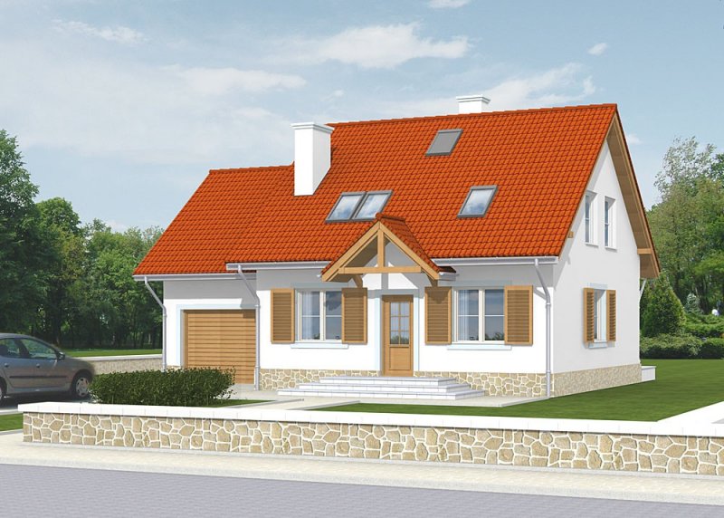 Dom jednorodzinny, parterowy, z poddaszem użytkowym, podpiwniczony i z jednostanowiskowym garażem.