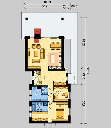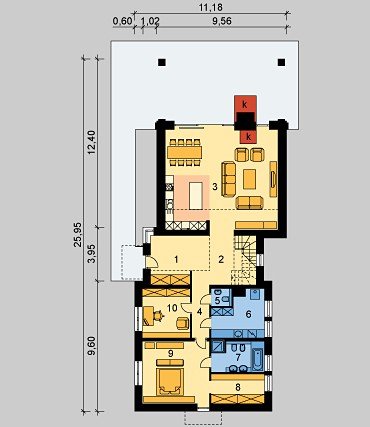 3. Pokój dzienny z kuchnią i jadalnią 61.2m
