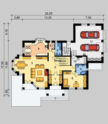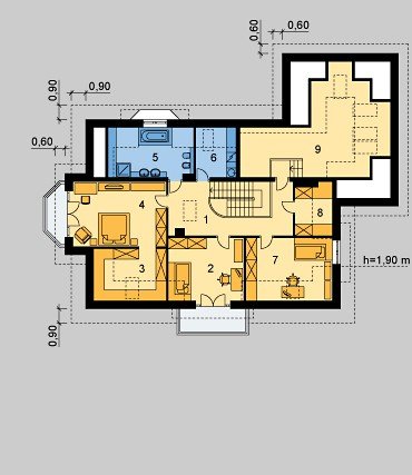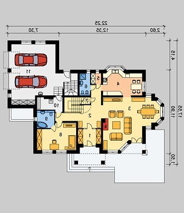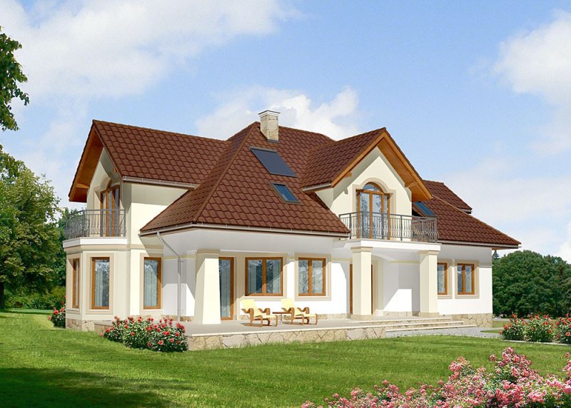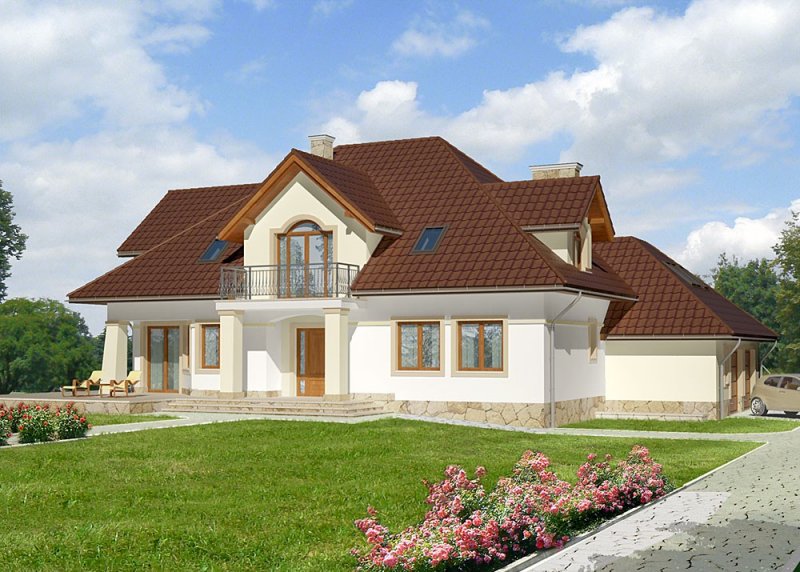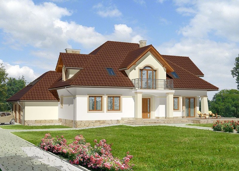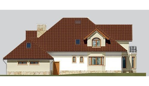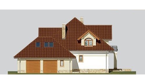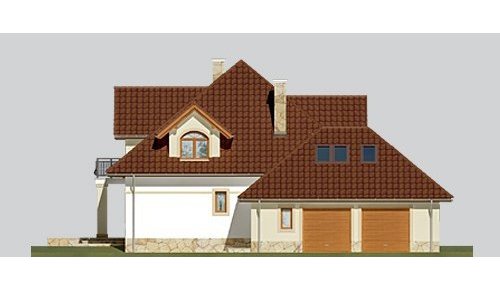 Dom jednorodzinny, parterowy z poddaszem użytkowym, podpiwniczony, z dwustanowiskowym garażem.