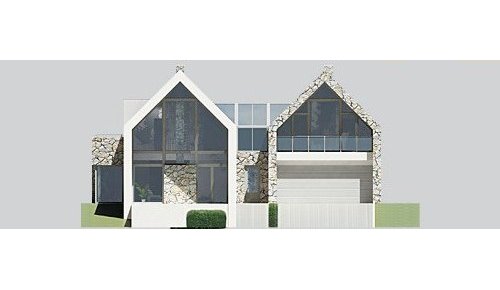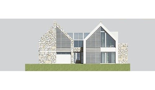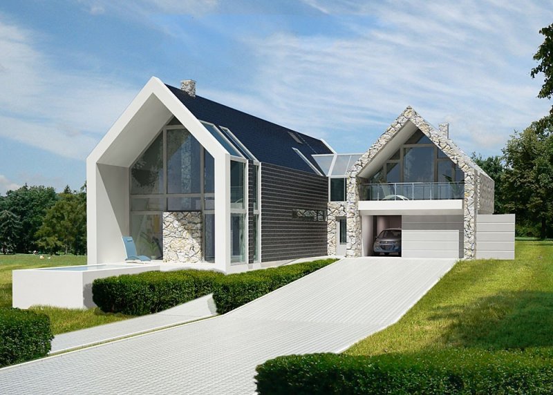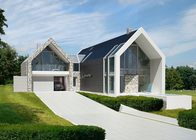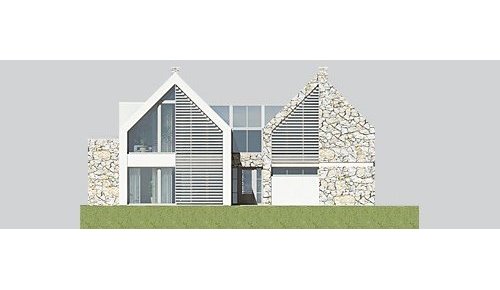 Dom jednorodzinny, parterowy z poddaszem użytkowym i dwustanowiskowym garażem.
