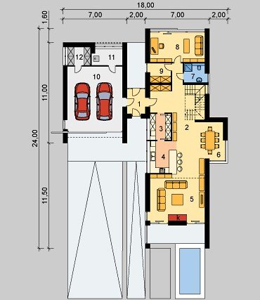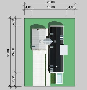 - Min. wymiary działki 26.00x35.00 m