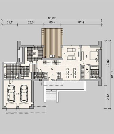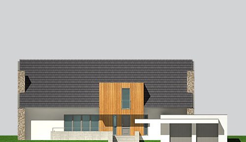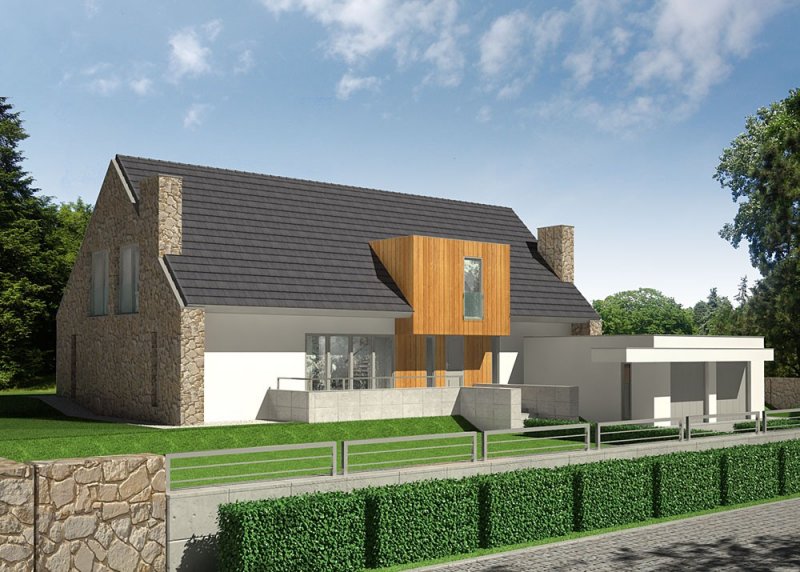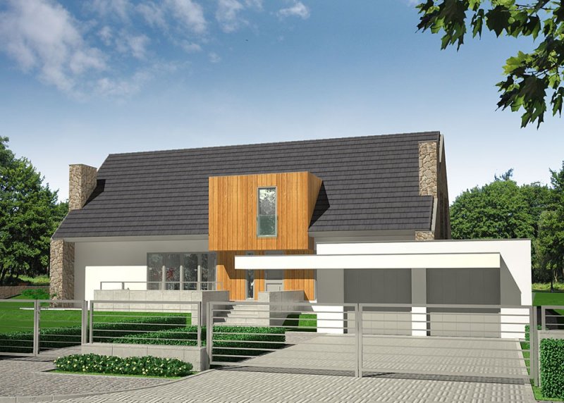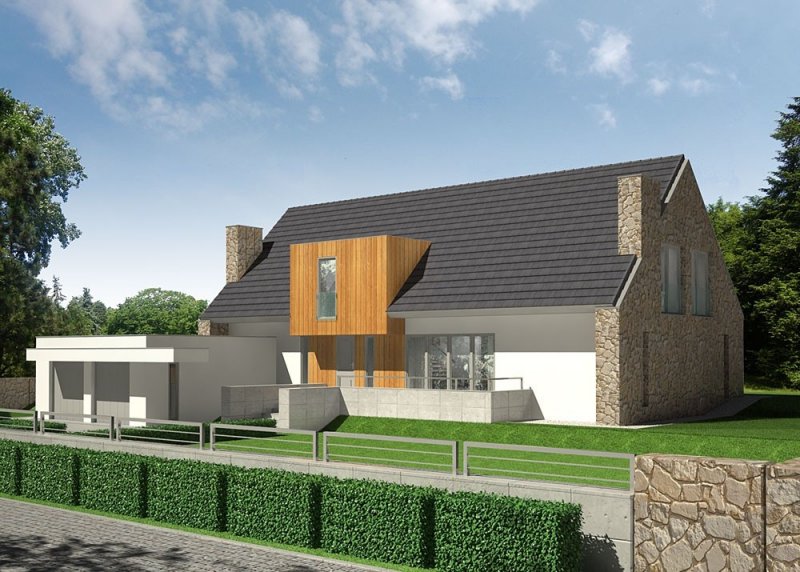 Dom parterowy, z poddaszem użytkowym oraz dwustanowiskowym garażem.