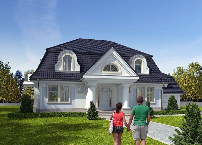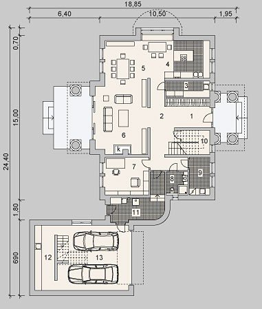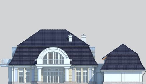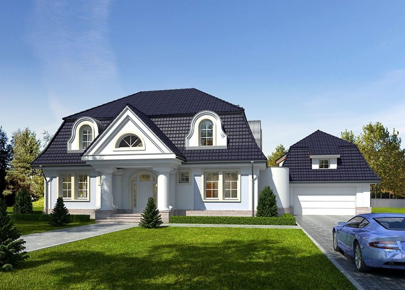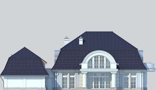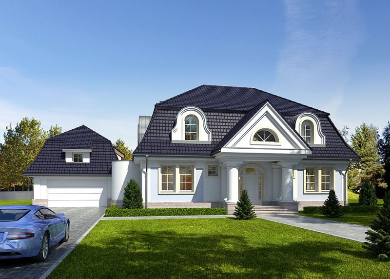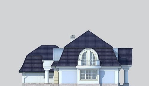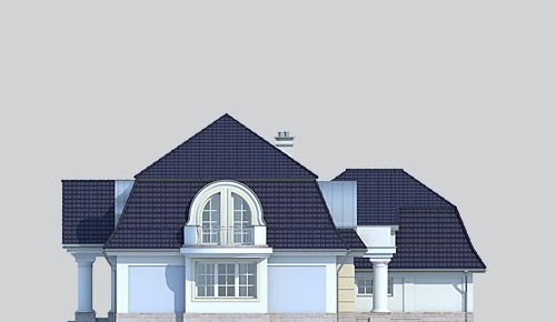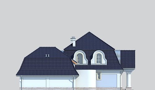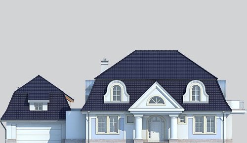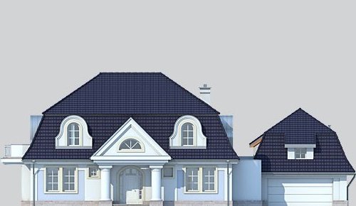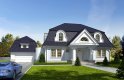 Dom jednorodzinny, parterowy, z poddaszem użytkowym, z dwustanowiskowym garażem.