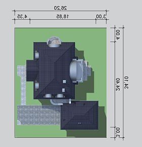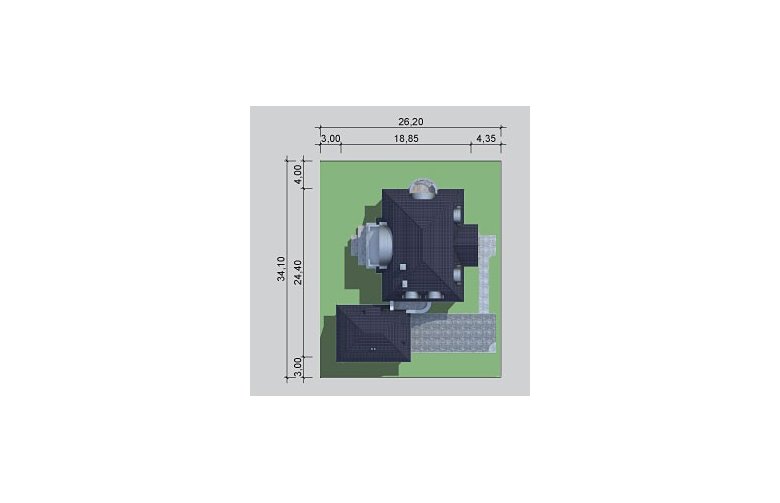 - Min. wymiary działki 26.20x34.10 m