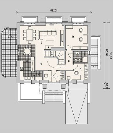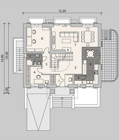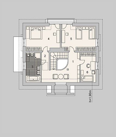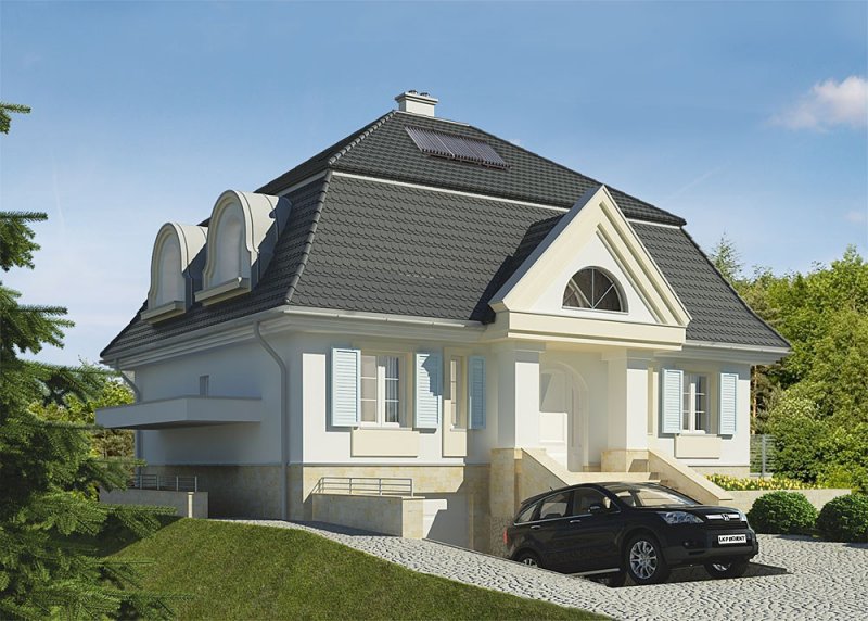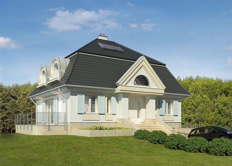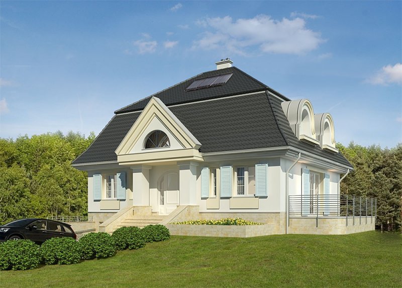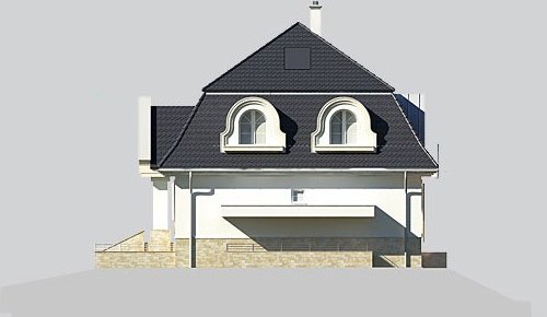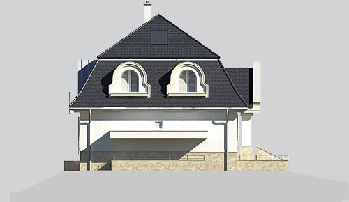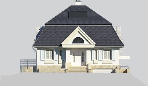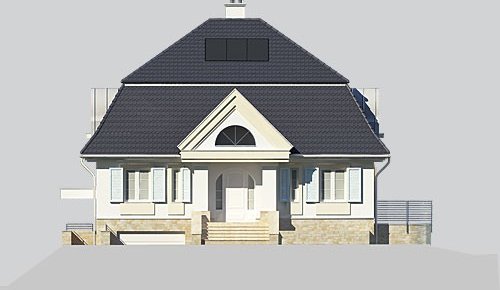 - Elewacje: wykończone tynkiem silikonowym, cokoły wykończone kamieniem naturalnym ciętym