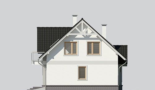 - Pokrycie dachu: dachówką ceramiczną 'Koramic' firmy 'Wienerberger', renesansową E32