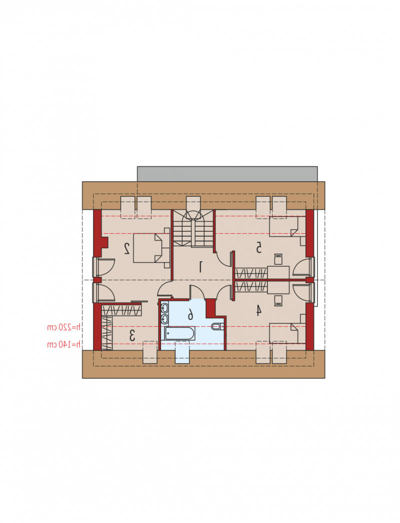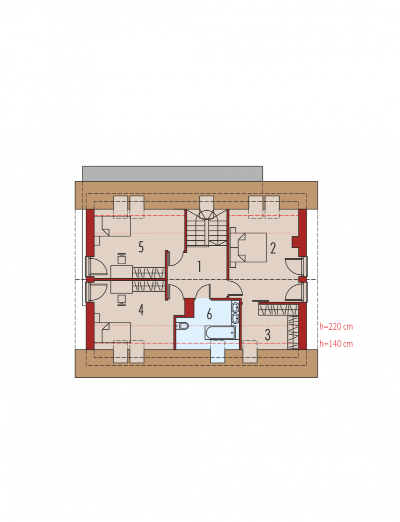 Dach: konstrukcja drewniana, ocieplenie wełna mineralna 30 cm, dachówka ceramiczna płaska