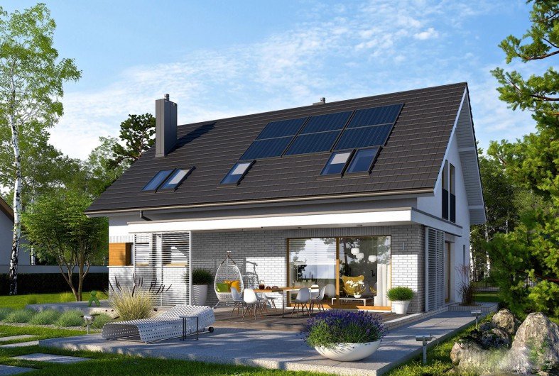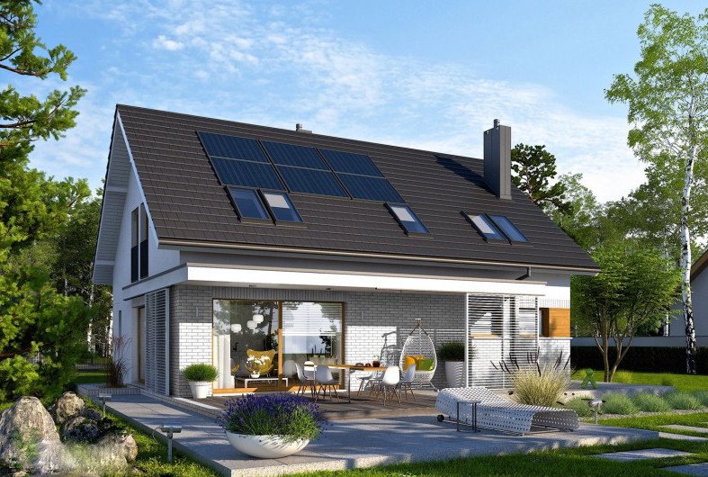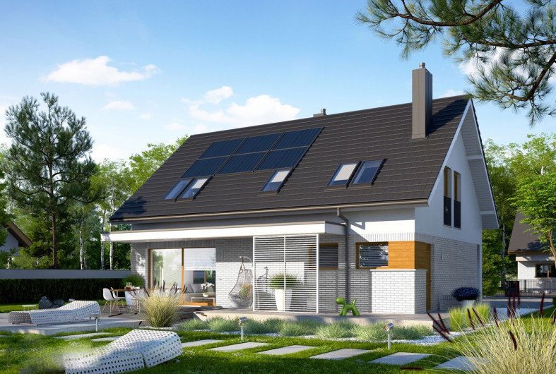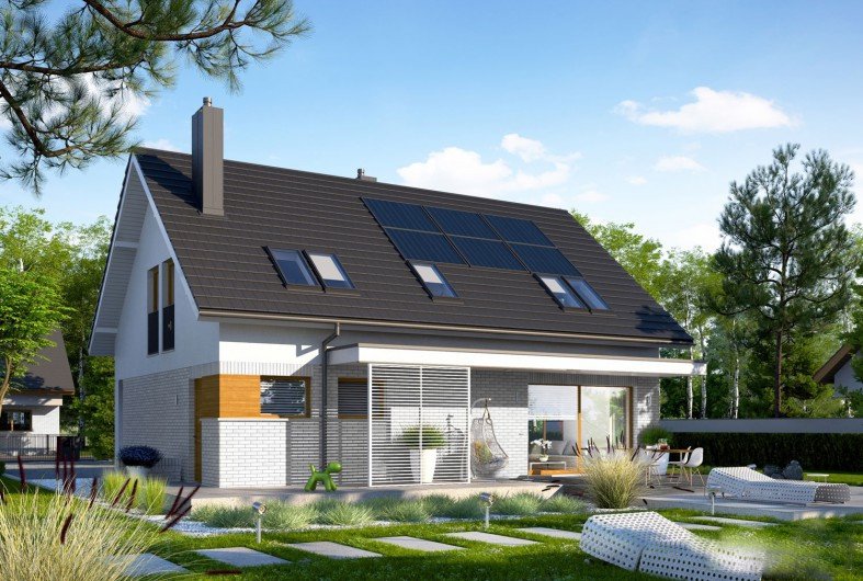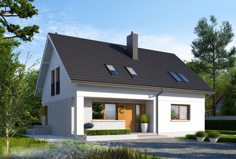 Logan II to komfortowy, ergonomiczny i tani w budowie dom, który znakomicie wpisuje się w oczekiwania nowoczesnej rodziny. Imponujące przeszklenie otwiera strefę dzienną domu na dyskretnie zadaszony taras tworząc spójną przestrzeń relaksu dla mieszkańców. Wydzielona, zapewniająca intymność część nocna na poddaszu oraz wygodny gabinet zadowoli najbardziej wymagających domowników.