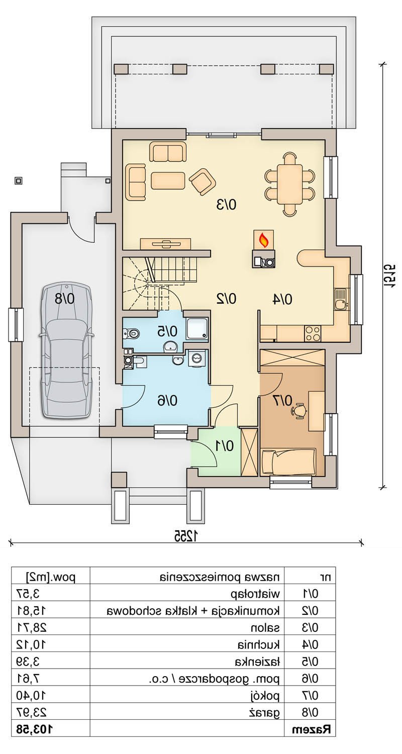 - zadaszone miejsce z tyłu garażu, gdzie można np. przechowywać drewno do kominka