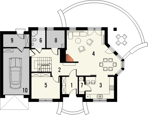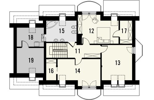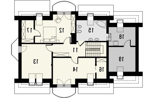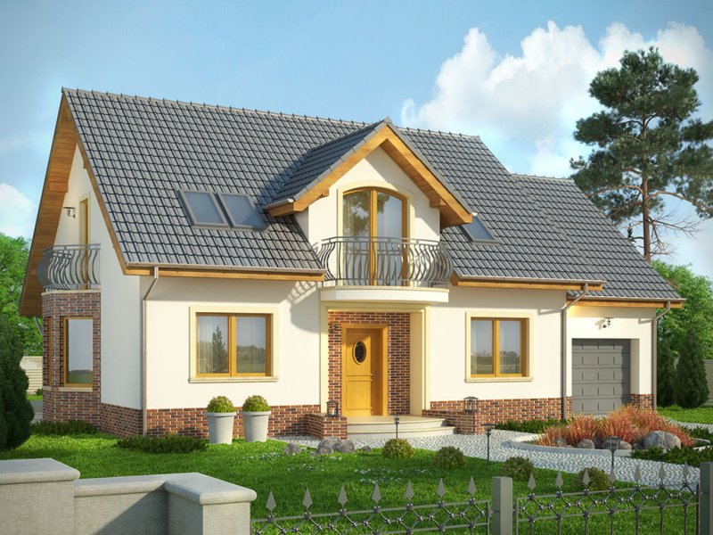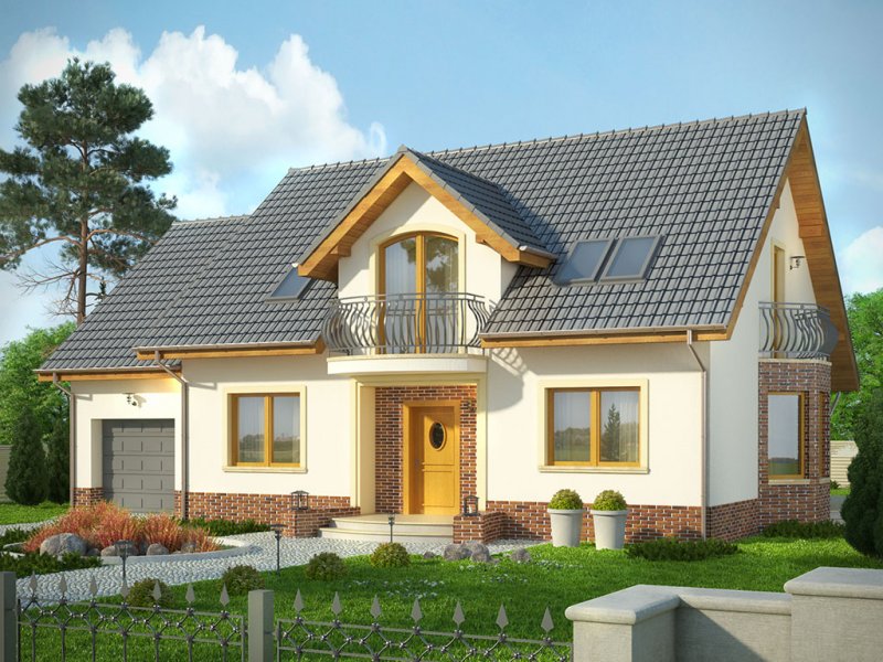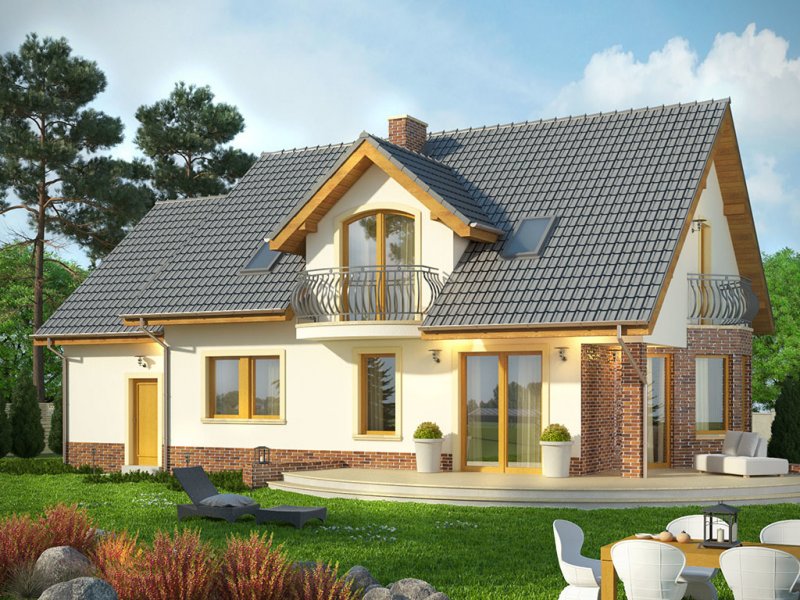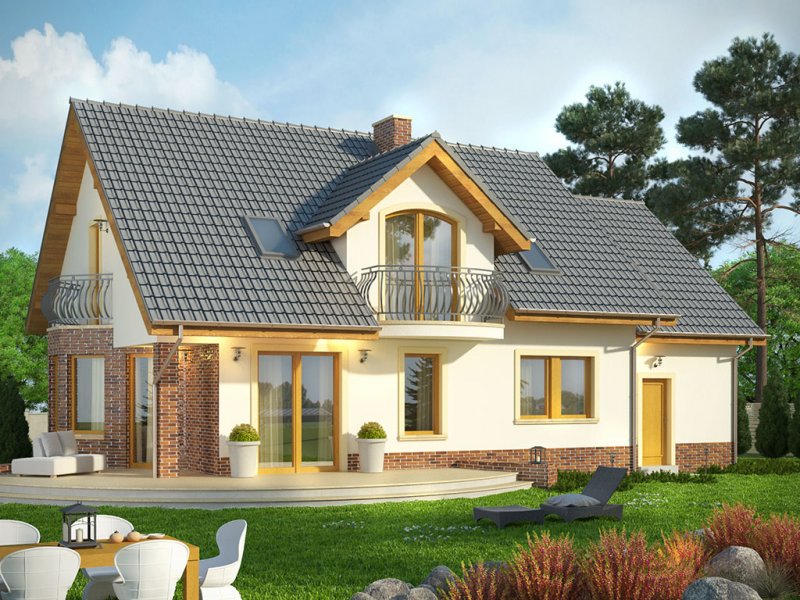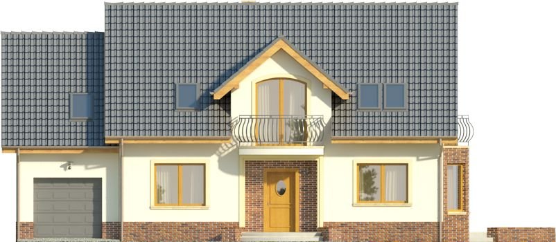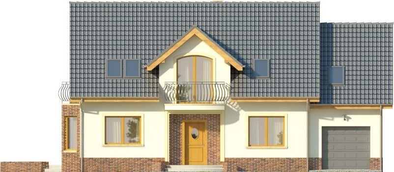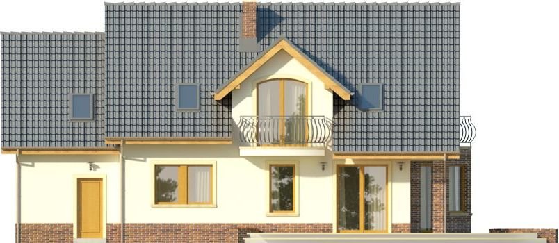 Dom jednorodzinny Magnoliato budynek z poddaszem użytkowym, niepodpiwniczony, kryty dachem dwuspadowym.Na parterze zaprojektowany został salon z kuchnią wyposażoną w spiżarkę,łazienka, 2 pomieszczenia gospodarcze, garaż oraz dodatkowy pokój. Na piętrzeznalazły się trzy sypialnie i łazienka. Przestrzeń ponad garażem to strych,który można wykorzystać na dodatkowe funkcje, np. pralnię dostępną z łazienki.Nad wejściem, któreulokowano w podcieniu, zaprojektowano malowniczą lukarnę z balkonem. Podobnalukarna pojawiła się także od strony ogrodu. Charakterystycznym motywem, jakipojawił się w tym projekcie, jest kanciasty wykusz na elewacji bocznej,wyróżniony okładziną z płytek. Posiada on oryginalny kształt, płynnie łączącysię z podcieniem od strony ogrodu. Projekt dostępny jest w wariantach standardoraz odbicie lustrzane.