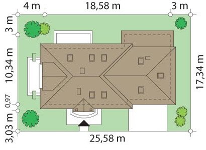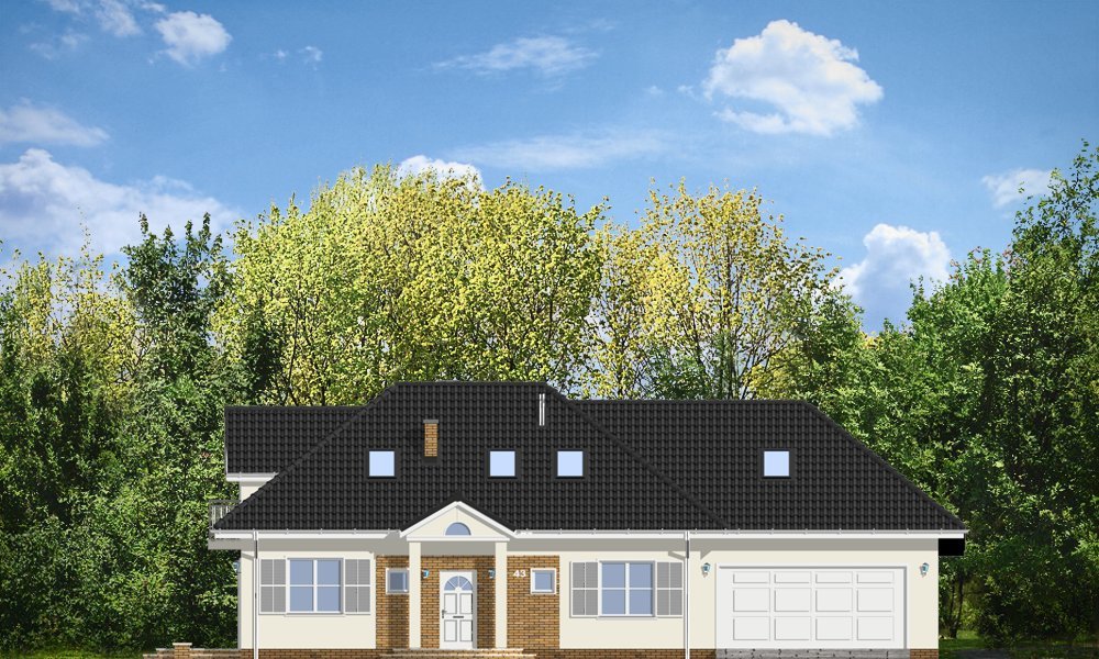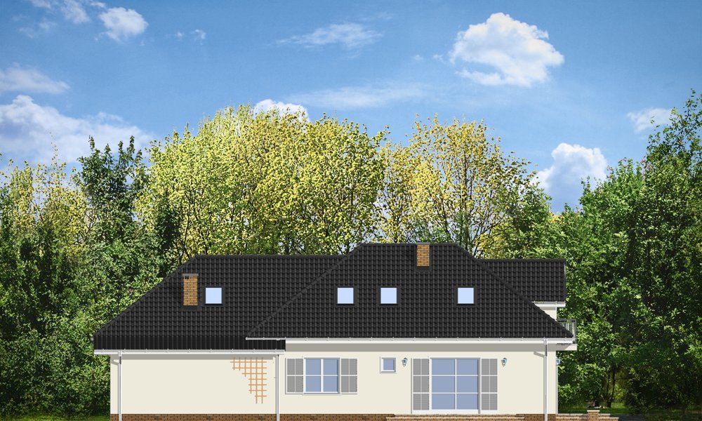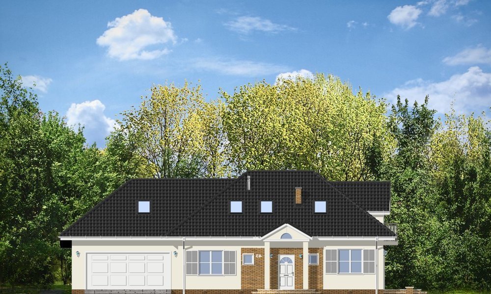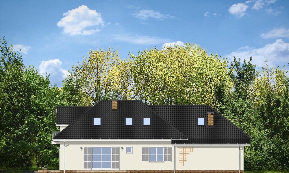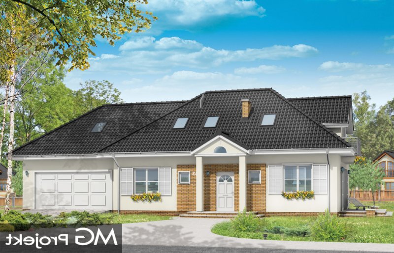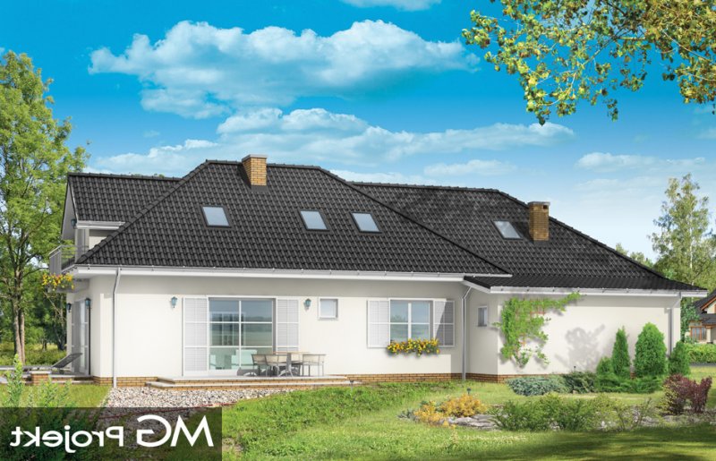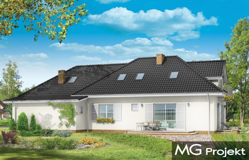 Magnolia to budynek jednorodzinny dla cztero-pięcioosobowej rodziny. Budynek jest parterowy z użytkowym poddaszem, oraz dobudowanym dwustanowiskowym garażem. Projekt nawiązuje swoją architekturą do typowego polskiego dworku. W udany sposób połączono w nim tradycyjną formę z nowoczesną funkcją, materiałami i detalami. Dzięki otwarciu tarasów na dwie strony, na elewację tylną i boczną, dom może być posadowiony na działce z ogrodem w tylnej lub w bocznej części działki. Wszystko zależy od lokalizacji względem stron świata i od kształtu parceli. W trakcie adaptowania domu do lokalizacji można zrezygnować z któregoś z tarasów. Wewnątrz domu, na parterze zaprojektowano salon z częścią jadalną połączony z holem i częściowo z kuchnią, sypialnię rodziców z garderobą w przestrzeni pod schodami, oraz dodatkowy pokoik - gabinet lub sypialnię gościnną. W części gospodarczej zaplanowano garaż i pomieszczenie gospodarcze - kotłownię. Na poddaszu miejsce znalazły dwie sypialnie dziecięce z łazienką. W projekcie na uwagę zasługuje również strych nad garażem, który można wykorzystać jako przestrzeń użytkową.