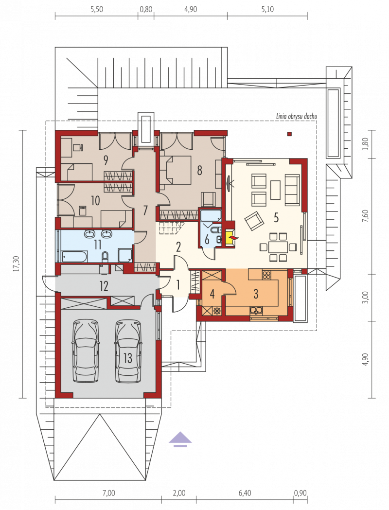 - Kąt nachylenia dachu 30.00°