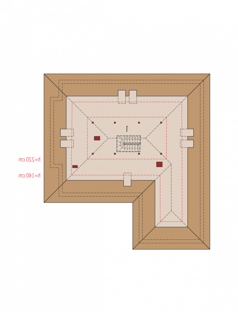 - Dach o konstrukcji drewnianej pokryty dachówką płaską lub inną o podobnych parametrach